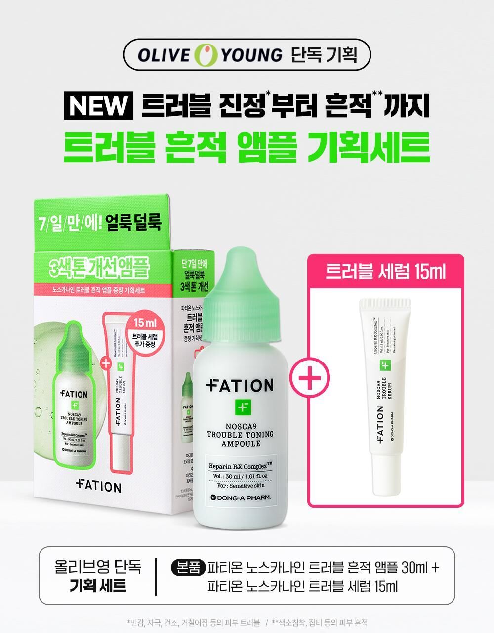 現貨|Fation Nosca9 Trouble Toning Serum 去痘印提亮精華30ml+Nosca9 Trouble Serum 抗痘消炎精華15ml