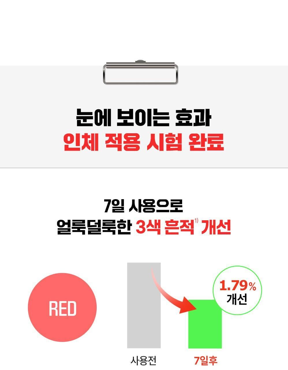 • 使用一次後,肌膚因外界刺激而引起的泛血能即使改善129.8%