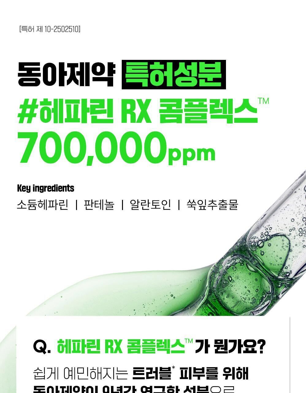 肝素納(抗炎抗敏)、泛醇(修復肌膚屏障)、尿囊素(舒緩保濕)、艾葉萃取物(消炎舒緩)