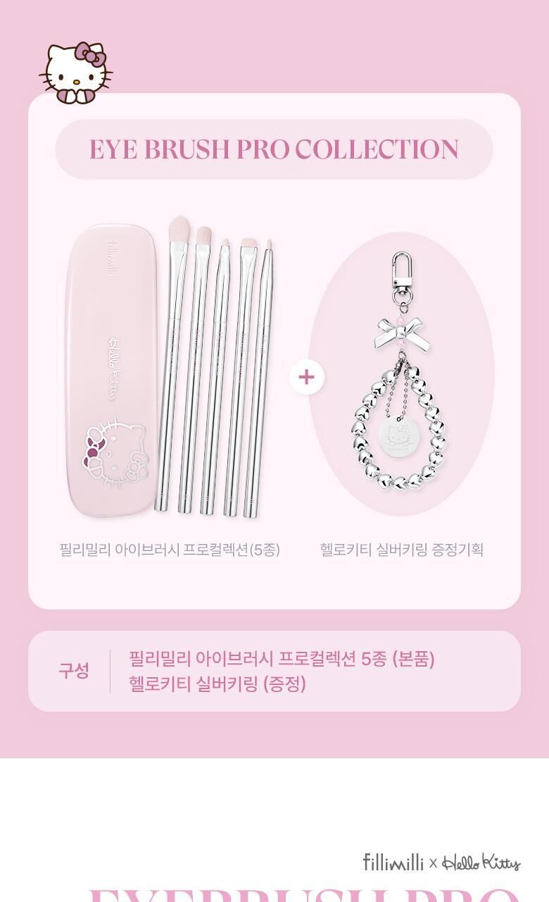 現貨|Fillimilli X Hello Kitty Eye Brush Pro Collection 💞 眼妝掃套裝 連收納盒+銀色愛心鎖匙扣