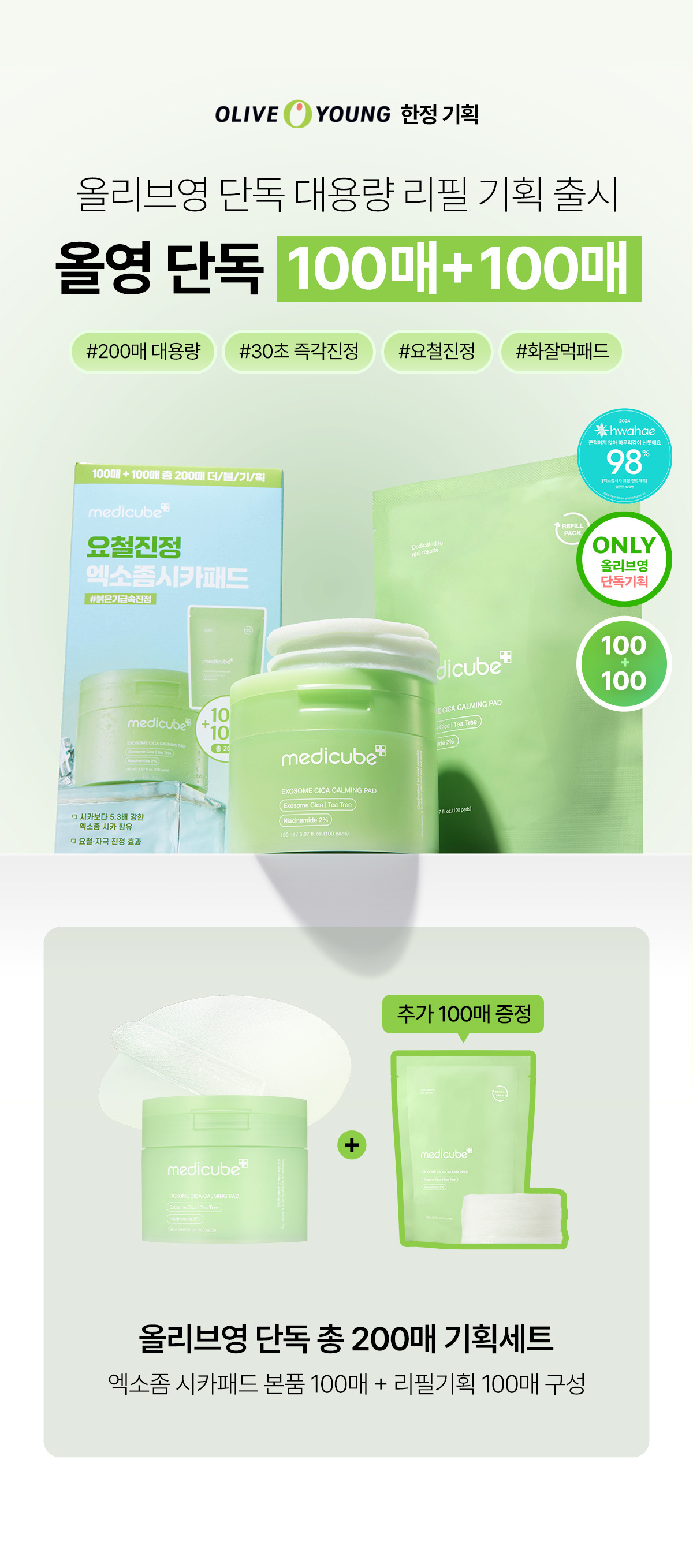 現貨|Medicube Exosome Cica Calming Pad 高效能積雪草舒緩爽膚棉片 100片+100片