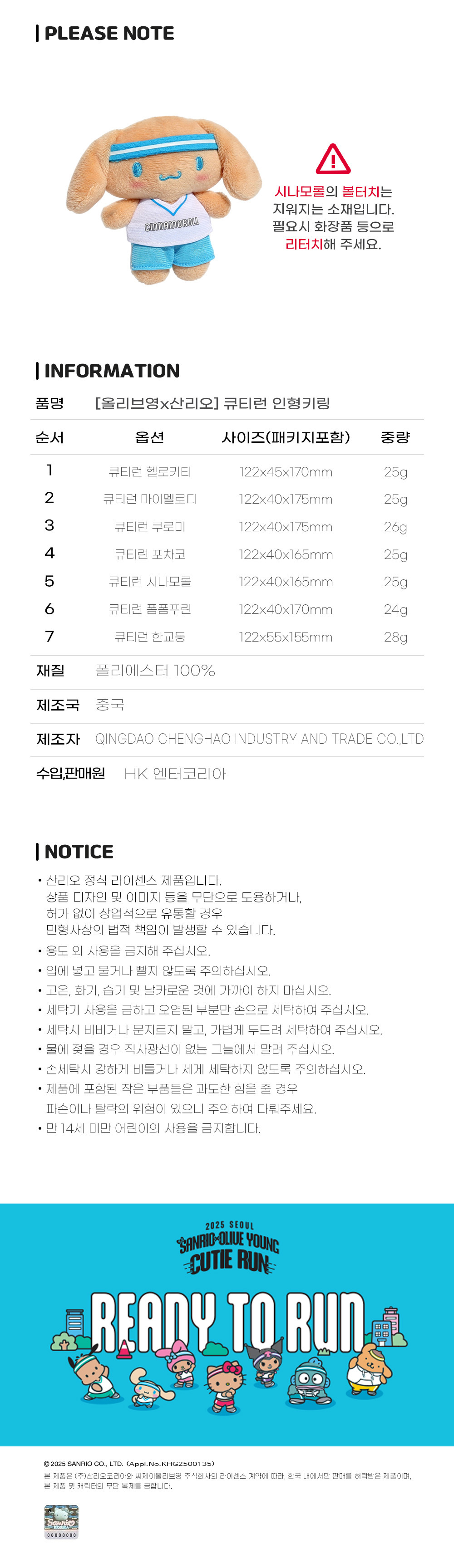 現貨|Olive Young X Sanrio Cutie Run Doll Keyring 公仔鎖匙扣