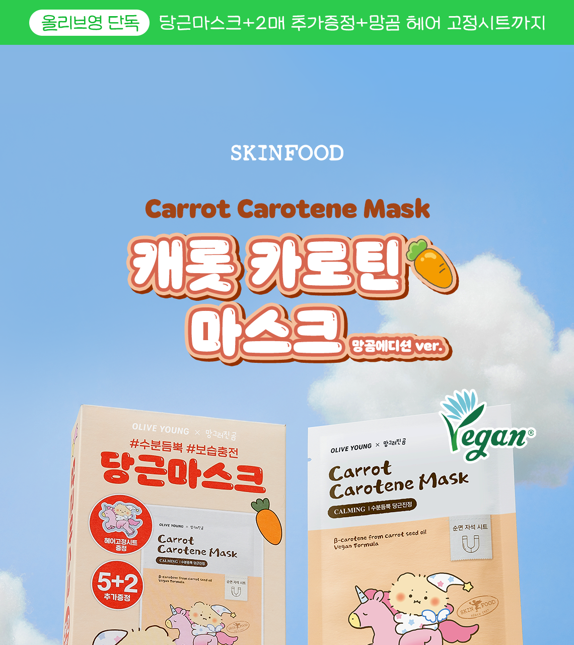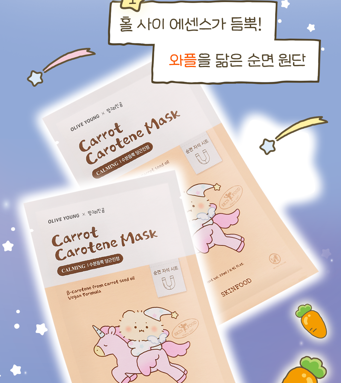 現貨|Skinfood Carrot Carotene Mask 紅蘿蔔素鎮靜補水面膜 5+2片+髮貼